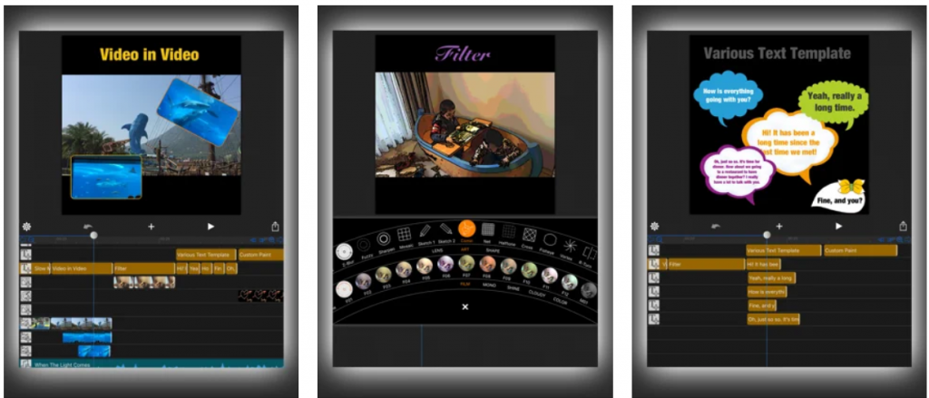 Mit MovieSpirit können Sie verschiedene Medienmaterialien wie Videos, Fotos, Musik, Text, Aufnahme und Fingergraffiti kombinieren und entsprechend Ihrer Kreativität zusammen bearbeiten und verschiedene Spezialeffekte hinzufügen (Szenenwechseleffekte, Textanimation, Filtereffekte, Video-Intro, Masken usw.), um Ihren eigenen Film zu erstellen.