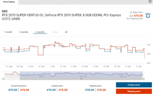 Bei digitec.ch gibt es begrenzt auf 80 Stück, die MSI GeForce RTX 2070S VENTUS OC (8GB) für 479.00.