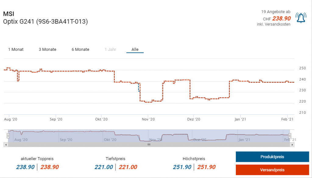 Bei Mediamarkt gibts derzeit den Full-HD Gaming-Bildschirm MSI Optix G241 mit 144 Hz Bildwiederholrate zum Preis von 249 Franken. Mit dabei ist laut Bild auch eine 50 Franken Geschenkkarte, allerdings wird nichts angezeigt wenn man es dem Warenkorb hinzufügt was etwas komisch wirkt…
