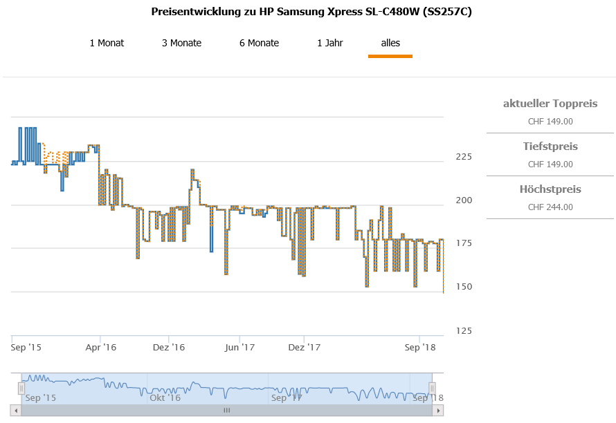 Gemäss toppreise war der best price bislang bei 152.90 CHF, der zweitbeste Preis aktuell liegt bei 179.80 CHF.
