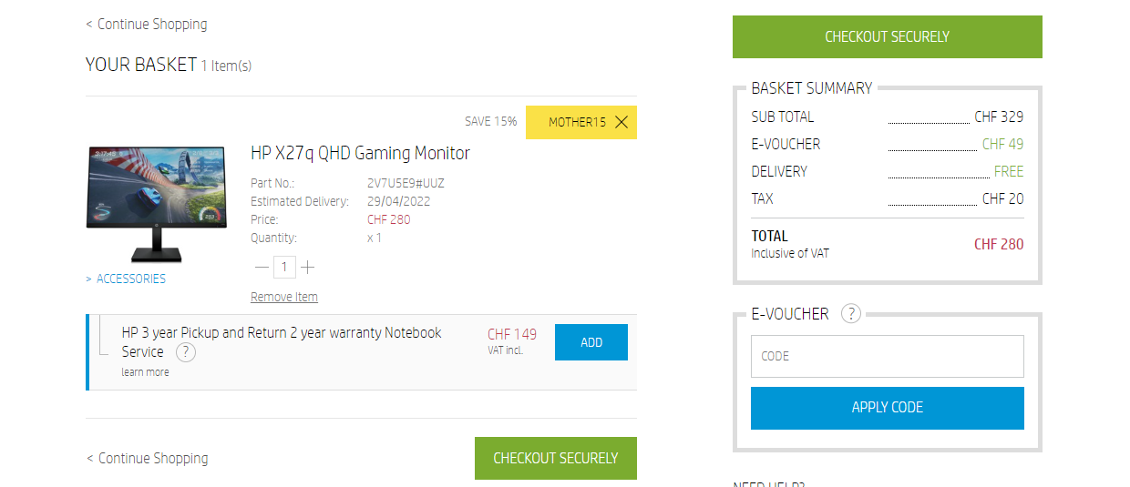 Good deal is HP X27q QHD Gaming Monitor for 280 CHF