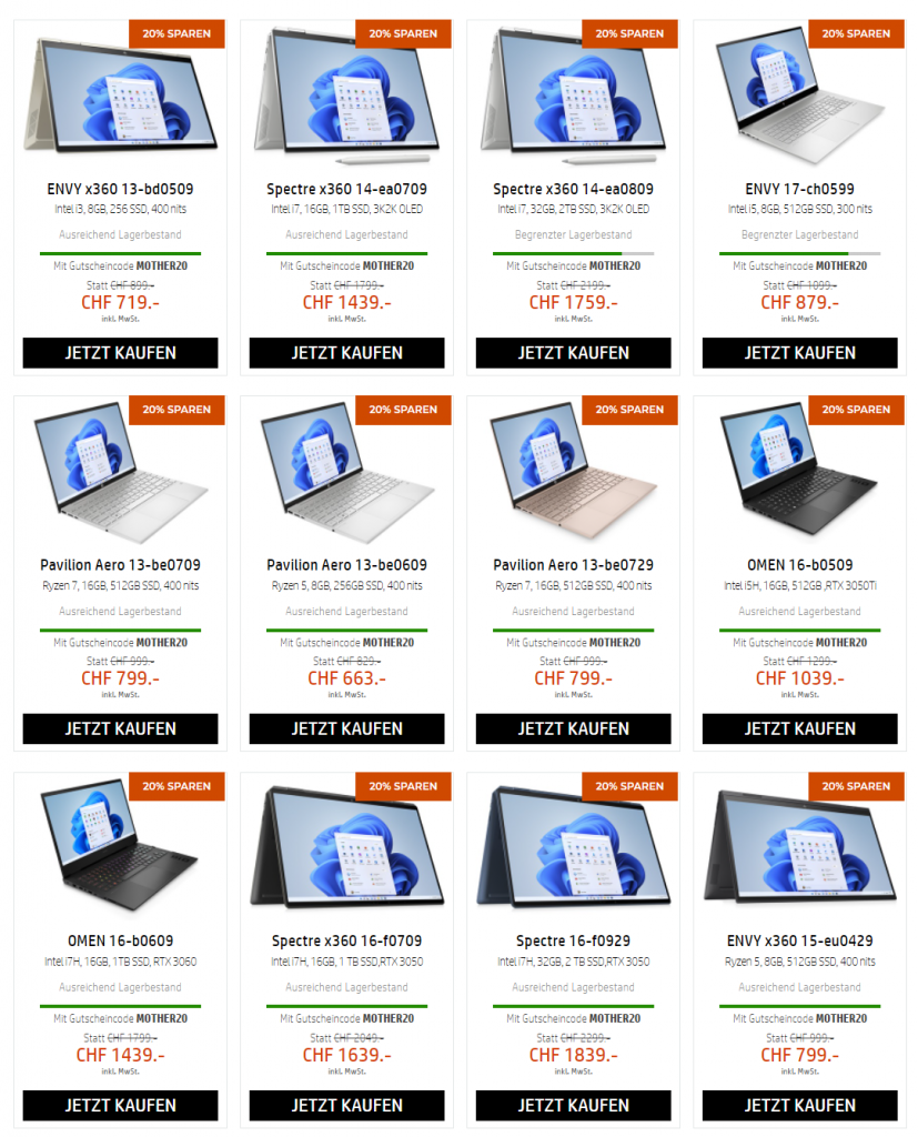 Bei HP gibt’s bis zum 09.05. den Sale zum Muttertag mit einigen Rabatten. Von Notebooks über Desktops, Monitoren bis hin zu Zubehör ist alles dabei.