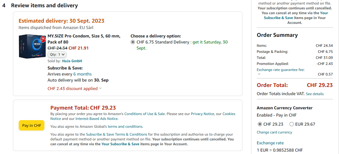 - Für Lieferungen in die Schweiz wird der Preis erst bei Angabe einer Schweizer Lieferadresse richtig angezeigt (Abzug der Mehrwertsteuer, zuzüglich Versandkosten) resp. beim Checkout an der Kasse (Amazon Frankreich, Italien, Spanien und Grossbritannien). Wir verwenden grundsätzlich den Interbanken-Kurs für die Umrechnung in CHF.