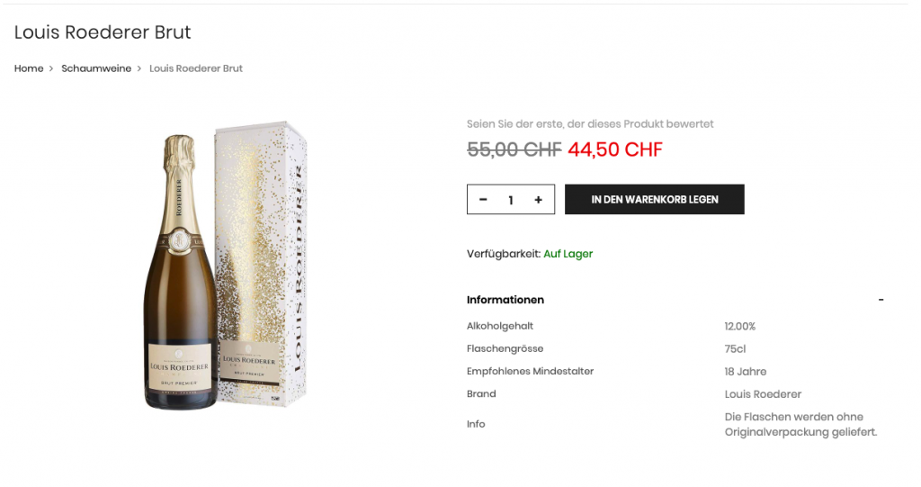 Louis Roederer Brut: 44,50 CHF stat 55.00 CHF