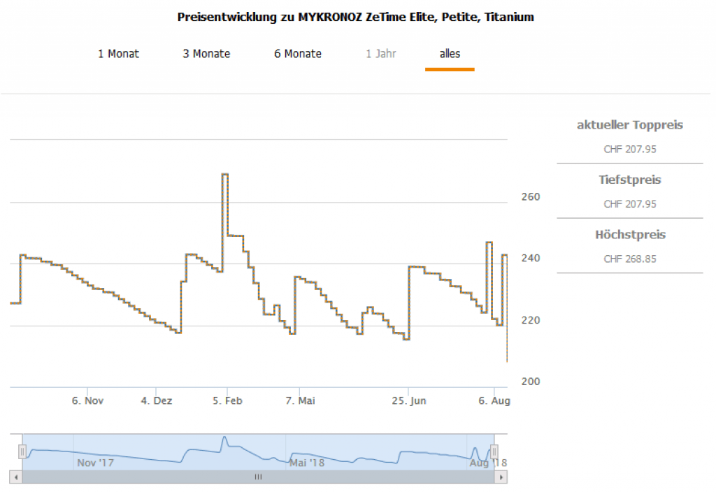 Gemäss toppreise gab es die Smartwatch in der Elite/Petite Variante über alle Farben noch nie günstiger als für 234.10 CHF. Der zweitbeste Preis liegt aktuell bei 240.15 CHF.