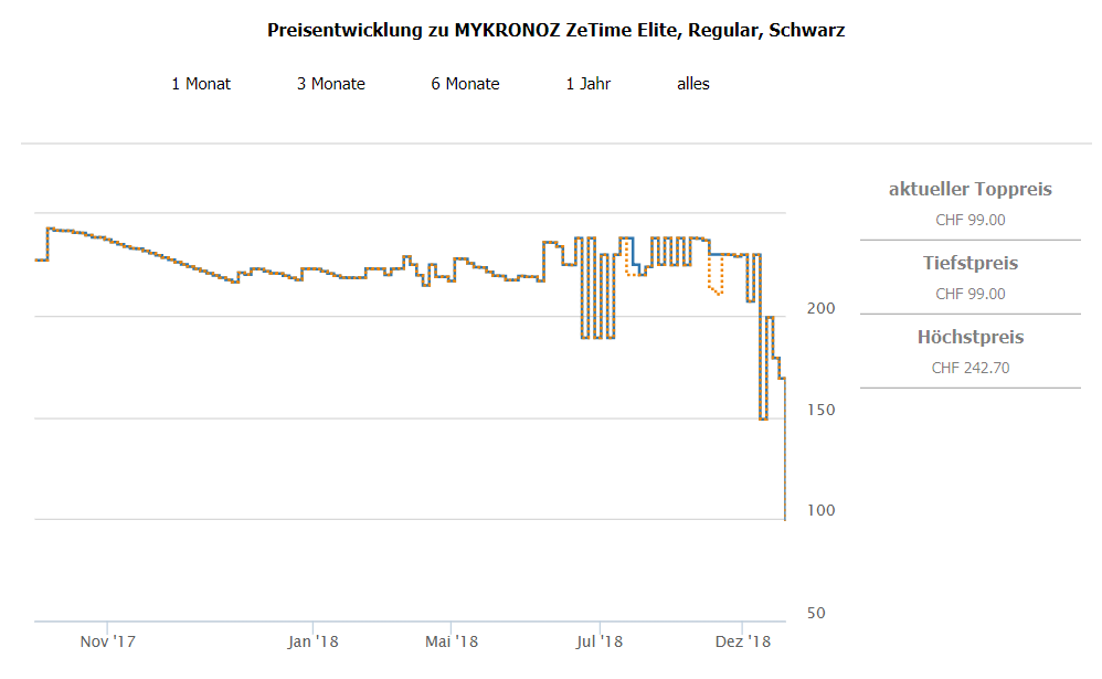 Bei microspot gibt’s gerade die Smartwatch MYKRONOZ ZeTime Elite, Regular, für CHF 99.- Zweitbester Preis in der Schweiz beträgt CHF 149.- Bestpreis bisher war CHF 99.-