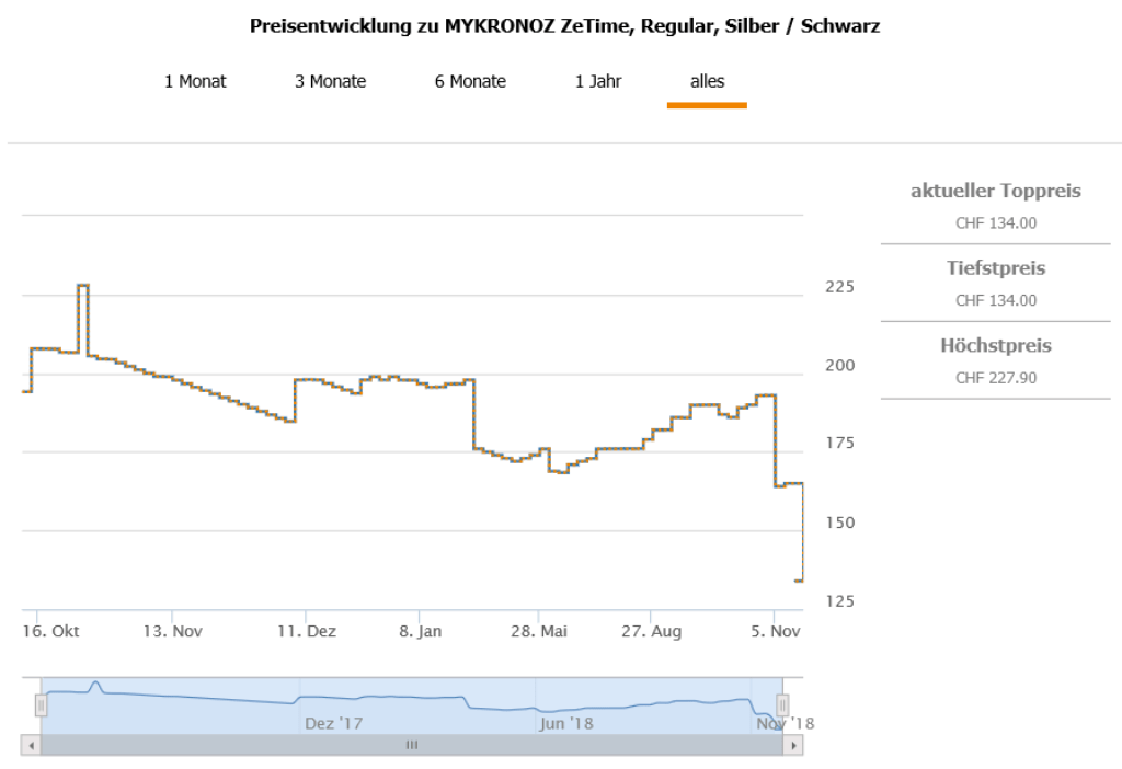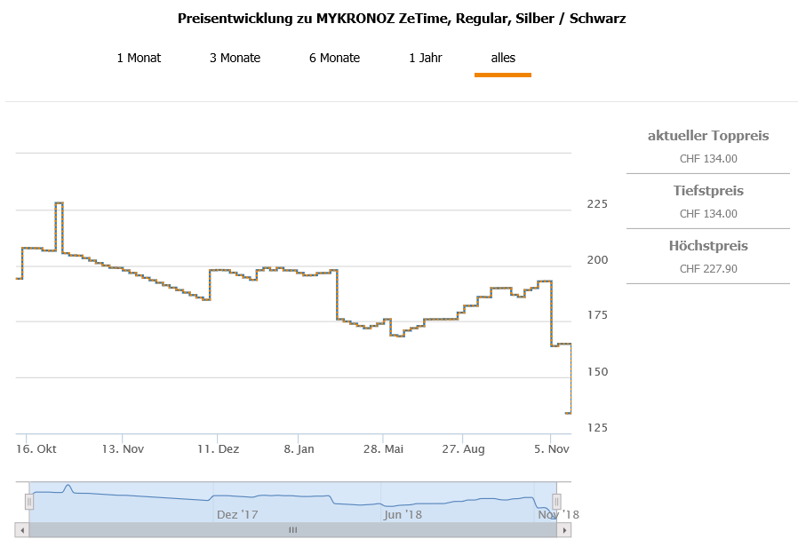 Bei digitec gibt es aktuell die MYKRONOZ ZeTime, Regular in Silber / Schwarz für 134.- CHF.