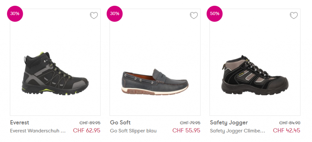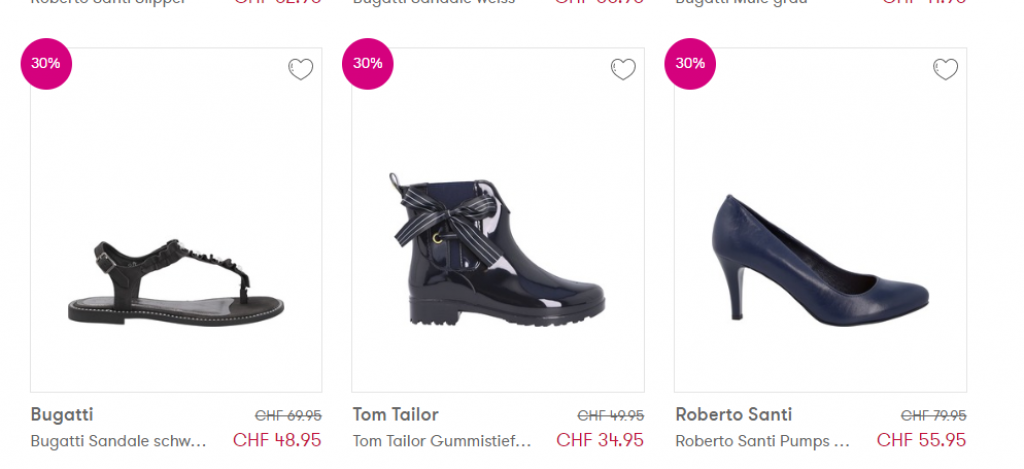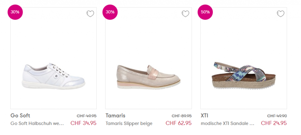 Bei Vögele Shoes geht der SALE in die nächste Runde. Es sind mehr Artikel reduziert und vorherig reduzierte Artikel wurden nochmals rabattiert. Zudem gibt’s auf den günstigeren Artikel der Bestellung zusätzlich 50% Rabatt auf die bereits reduzierten Preise. Also wirklich ein top Angebot.