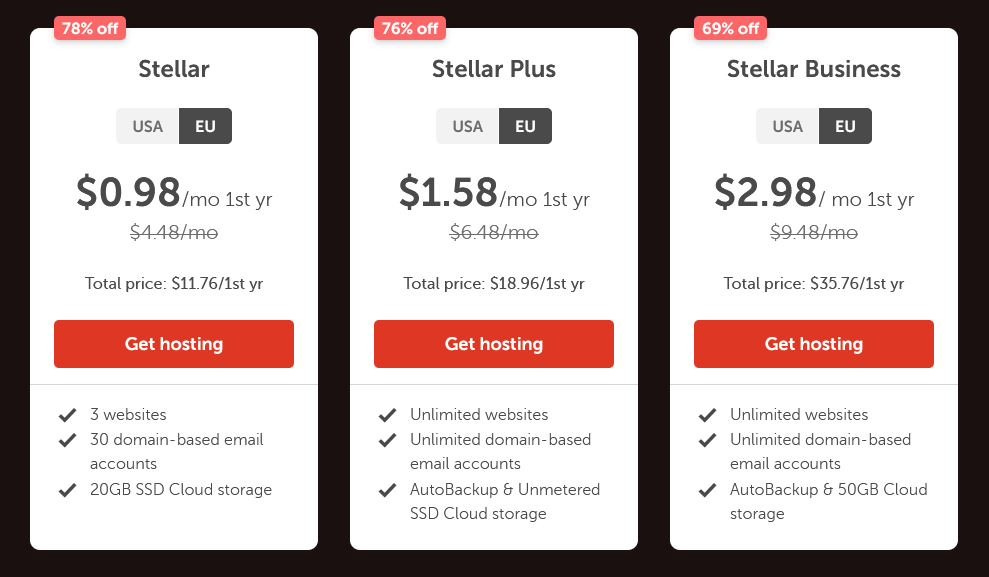 Shared Hosting Stellar Plus für 19.-/Jahr