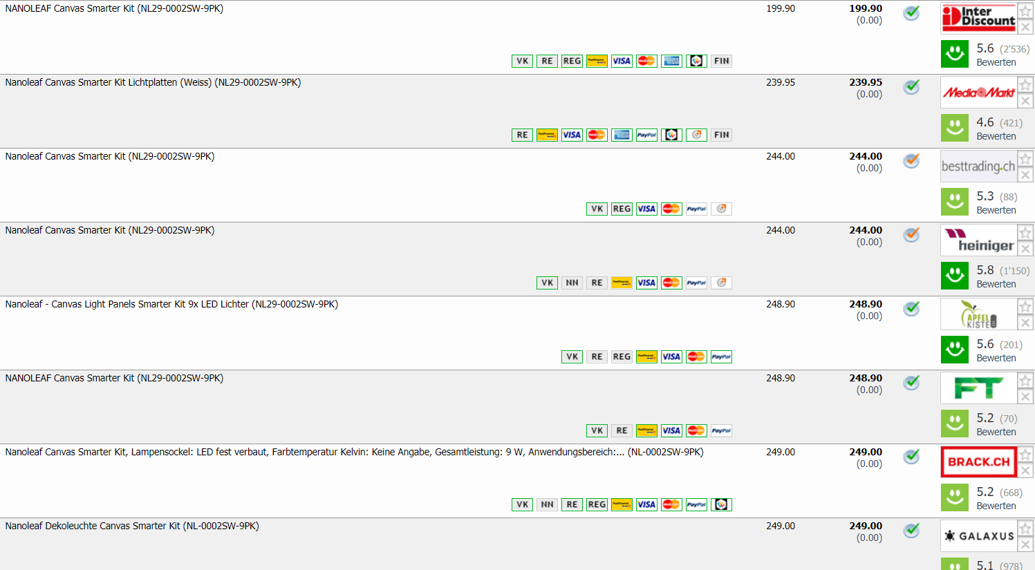 Bei Interdiscount heute im Tagesdeal gibt’s ein Nanoleaf Canvas Smarter Kit für CHF 199.90 Den zweitbesten Preis bietet MediaMarkt für CHF 239.95 was gleichzeitig auch der bisherige Bestpreis ist laut toppreise.