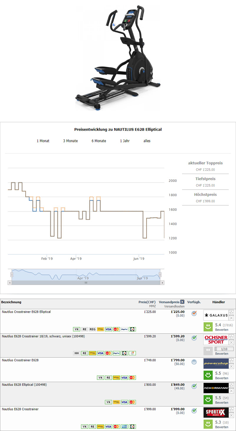 Bei Galaxus gibt es aktuell den Nautilus E628 Elliptical Crosstrainer zum Bestpreis von CHF 1225.-.