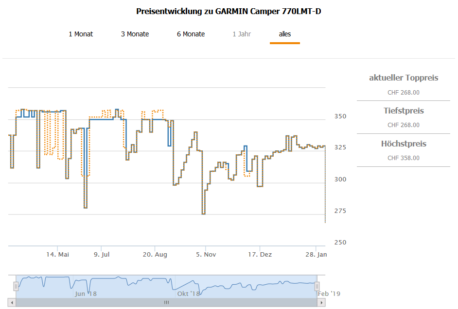 Bestprice bislang waren 271.10 CHF, der zweitbeste Preis aktuell liegt bei 329.- CHF.