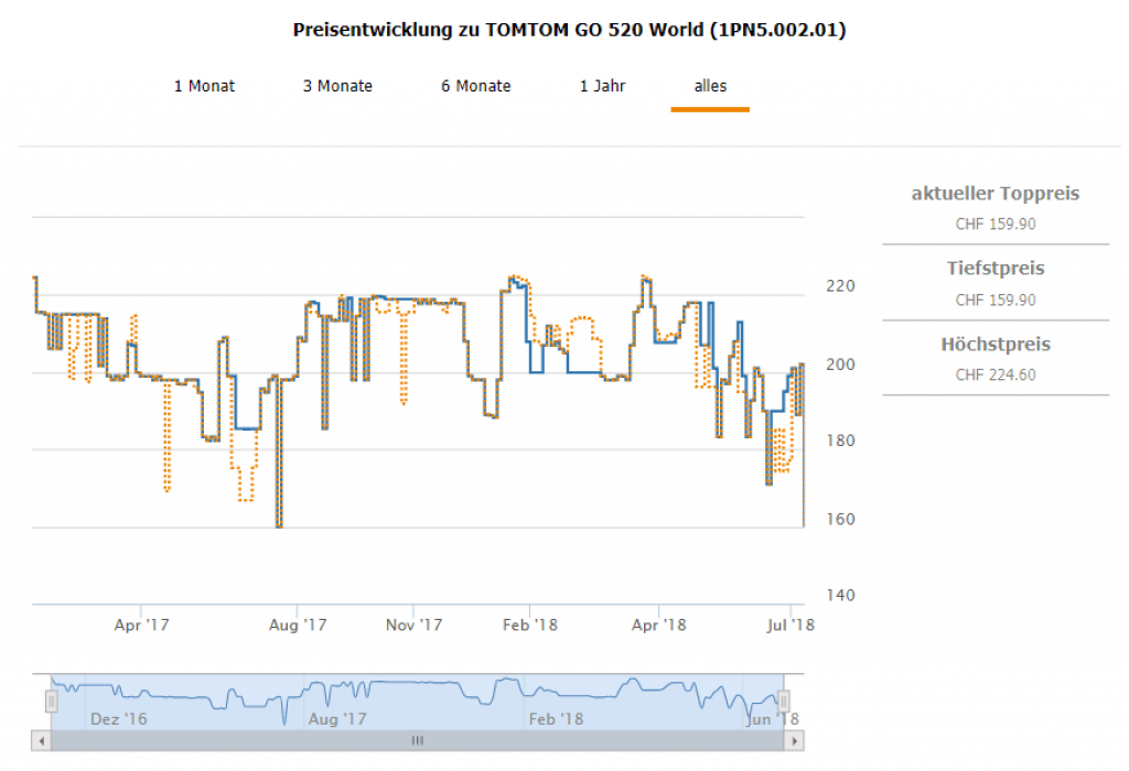Der zweitbeste Preis in der Schweiz liegt momentan bei CHF 202.- Voriger Bestpreis lag bei CHF 159.90, ziemlich genau vor einem Jahr.