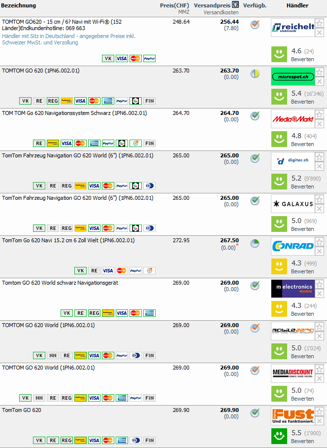 Zum Abschluss der 4 Tage Angebote bei MediaMarkt gibt es das Navi TOMTOM GO 620 World für 199.- CHF.