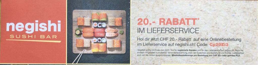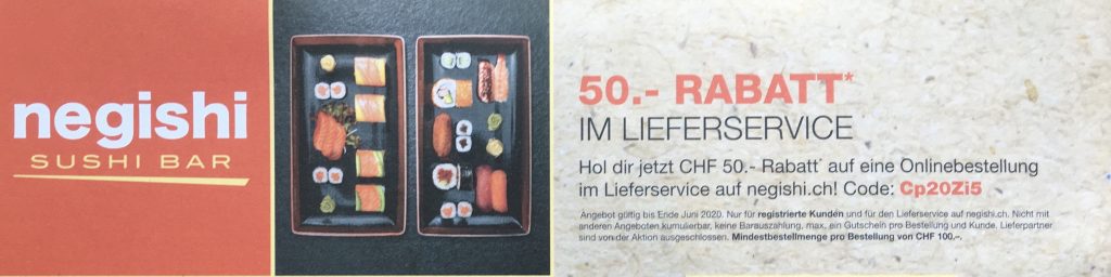 Negishi: 40.- CHF Rabatt im Lieferservice (nur für registrierte Kunden) - MBW 60.-