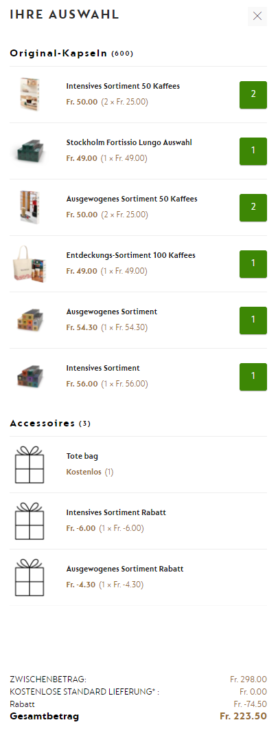 Tipp: wenn man innerhalb der Twint App auf Twint+ klickt und dann auf Kaffee Bestellen, erhält man bei 300 Kapseln 26 CHF Rabatt, gültig für alle Kunden :)