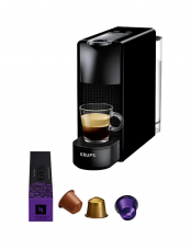 Einen köstlichen Espresso und cremigen Lungo bekommen Sie mit der Krups Nespressomaschine Essenza Mini, die das Herz eines Kaffeegeniessers höher schlagen lässt. Auf kleinstem Raum gibt es eine kompakte Brühgruppentechnologie mit Thermoblock-Heizelement. Mit der Flow-Stopp-Funktion lässt sich die Kaffeemenge problemlos programmieren. Nach der letzten Nutzung schaltet sich die Maschine nach neun Minuten automatisch ab. Gebrauchte Kapseln werden automatisch in den Kapselbehälter ausgegeben. Dank der kompakten Bauweise braucht die Maschine nur minimalen Platz.