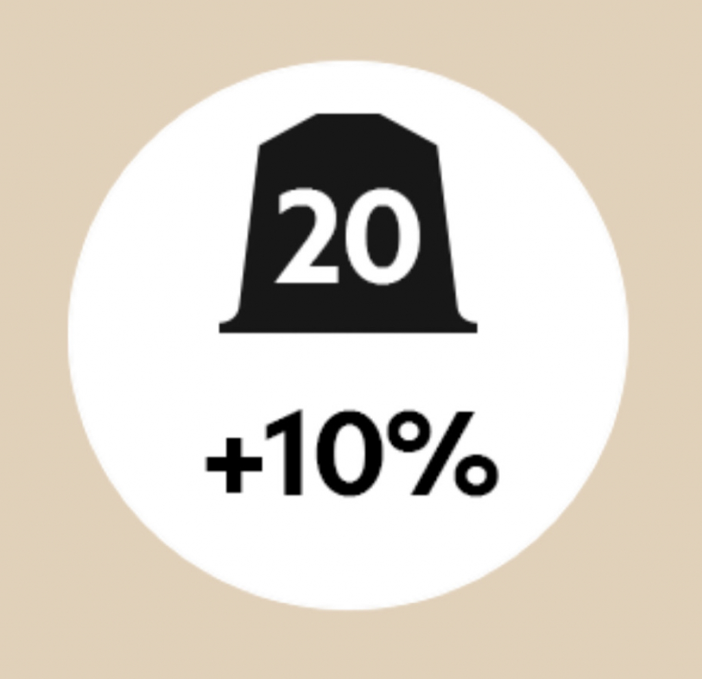 Beim Kauf von 150 Kaffees erhalten Sie 20 Kaffees geschenkt + 10% Reduktion auf Ihre nächste Bestellung.