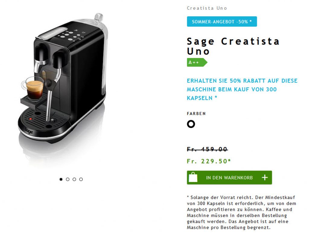 Die Sage Creatista Uno für unschlagbare 229.50 CHF. Das einzige was ihr machen müsst ist mindestens 300 Kapseln kaufen.