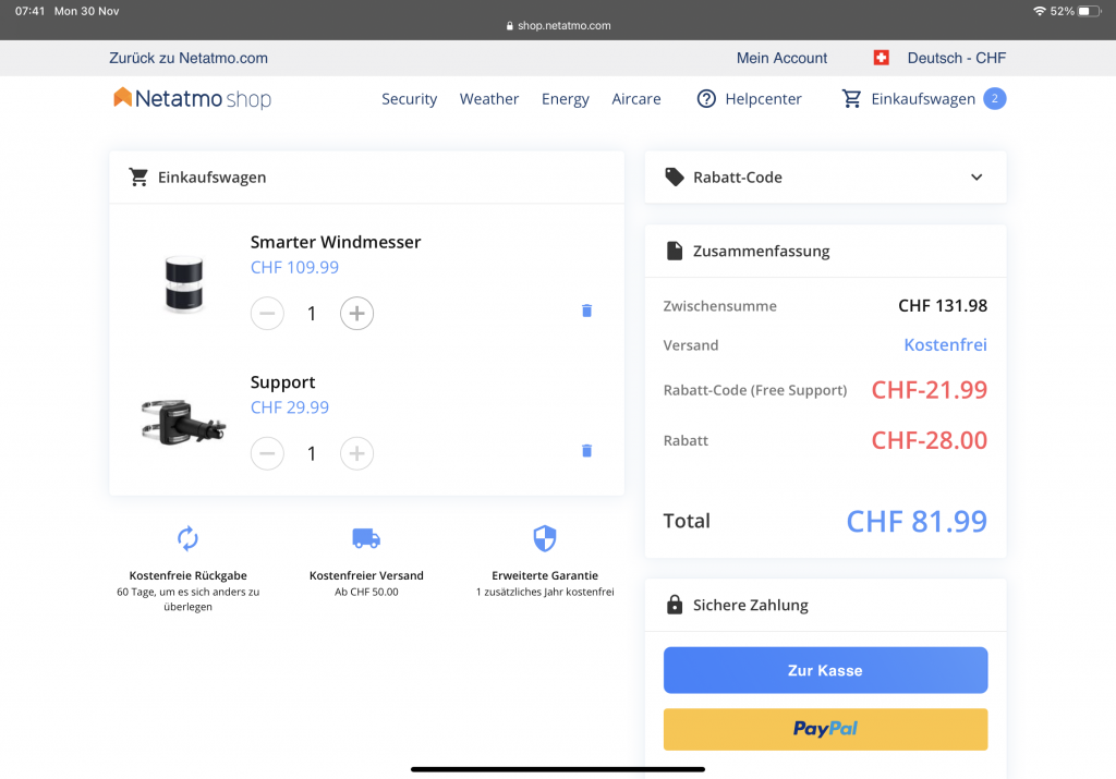 Insgesamt bietet Netatmo 25% auf ihre Produkte, die selten mit Rabatten gesegnet werden.