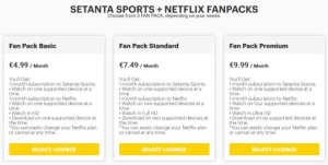 Über Setanta Sport kann mittels „Fan Pack“ Netflix günstig abonniert werden.