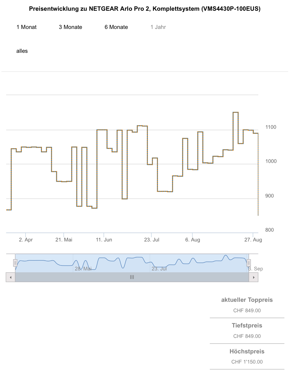 Gemäss toppreise gab es das System bislang nie günstiger als für 865.95 CHF, der zweitbeste Preis liegt aktuell bei 1089.- CHF.