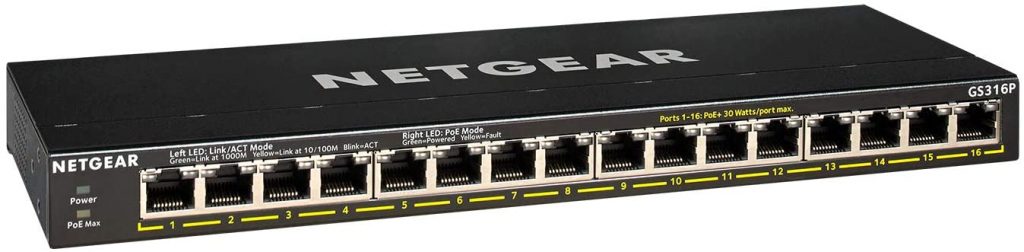 - POWER-OVER-ETHERNET: 16 PoE+ Ports mit Gesamtleistungsbudget von 115W und NETGEAR FlexPoE für Erweiterung auf 183 W (mit separat erworbenem Netzteil)