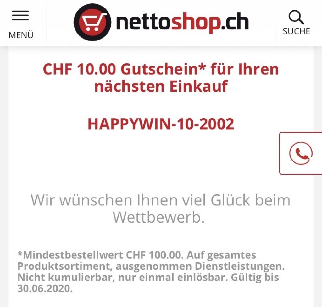 nettoshop.ch: 10.- CHF Gutschein, MBW 100.-