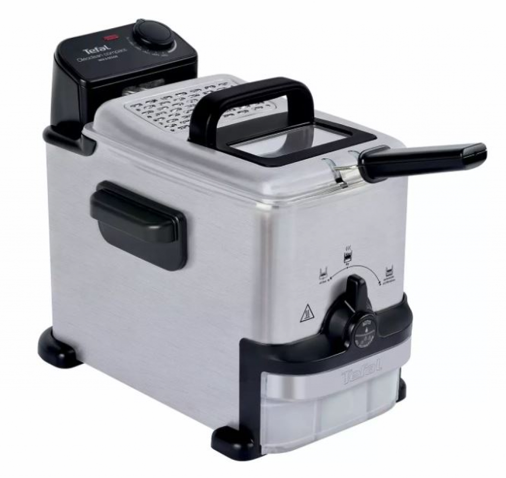 Oleoclean Compact ist eine semi-professionelle Fritteuse mit Kühlzonen-Technologie und einem frei im Frittierfett liegenden Heizelement aus Edelstahl für ein besonders schnelles Vorheizen und eine schnelle Temperaturregulierung. Sie ist definitiv eine der besten Fritteusen von Tefal für Liebhaber von Pommes frites; leistungsstark, praktisch, raffiniert und einfach zu bedienen. Diese Fritteuse hat alles, was Sie brauchen, um köstliche frittierte Gerichte zuzubereiten.