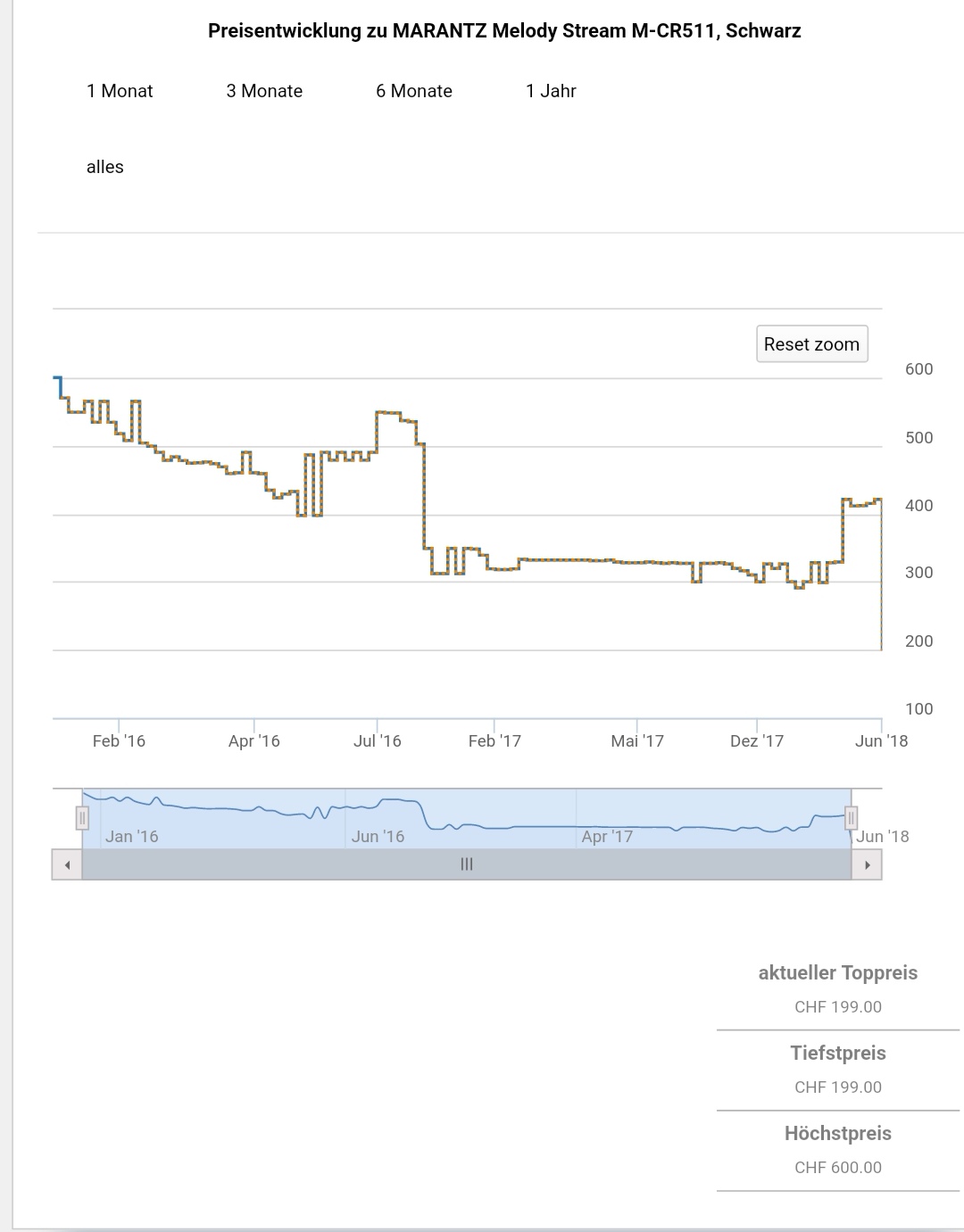 Im Moment gibt es den Netzwerk-Receiver bei microspot für 199 CHF, zweitbester Preis laut Toppreise 421 CHF.