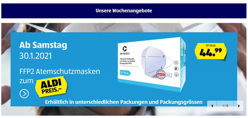 Ich habe heute meine FFP2 Masken von Aliexpress erhalten, die ich vor gut 2 Wochen bestellte. 50 Stück kosteten knapp 11 USD inklusive Porto, macht einen Stückpreis von 20 Rappen. (Mittlerweile sind sie etwas teurer, vor allem das Porto). Die Masken machen auf mich einen sehr guten Eindruck. Sie haben einen Metallbügel (kein Kunststoffbügel), d.h. tiptop für Brillenträger anpassbar. Zudem schliessen sie dicht am Gesicht ab. Wenn man also ein bisschen warten kann, erhält man so FFP2 Masken massiv billiger.