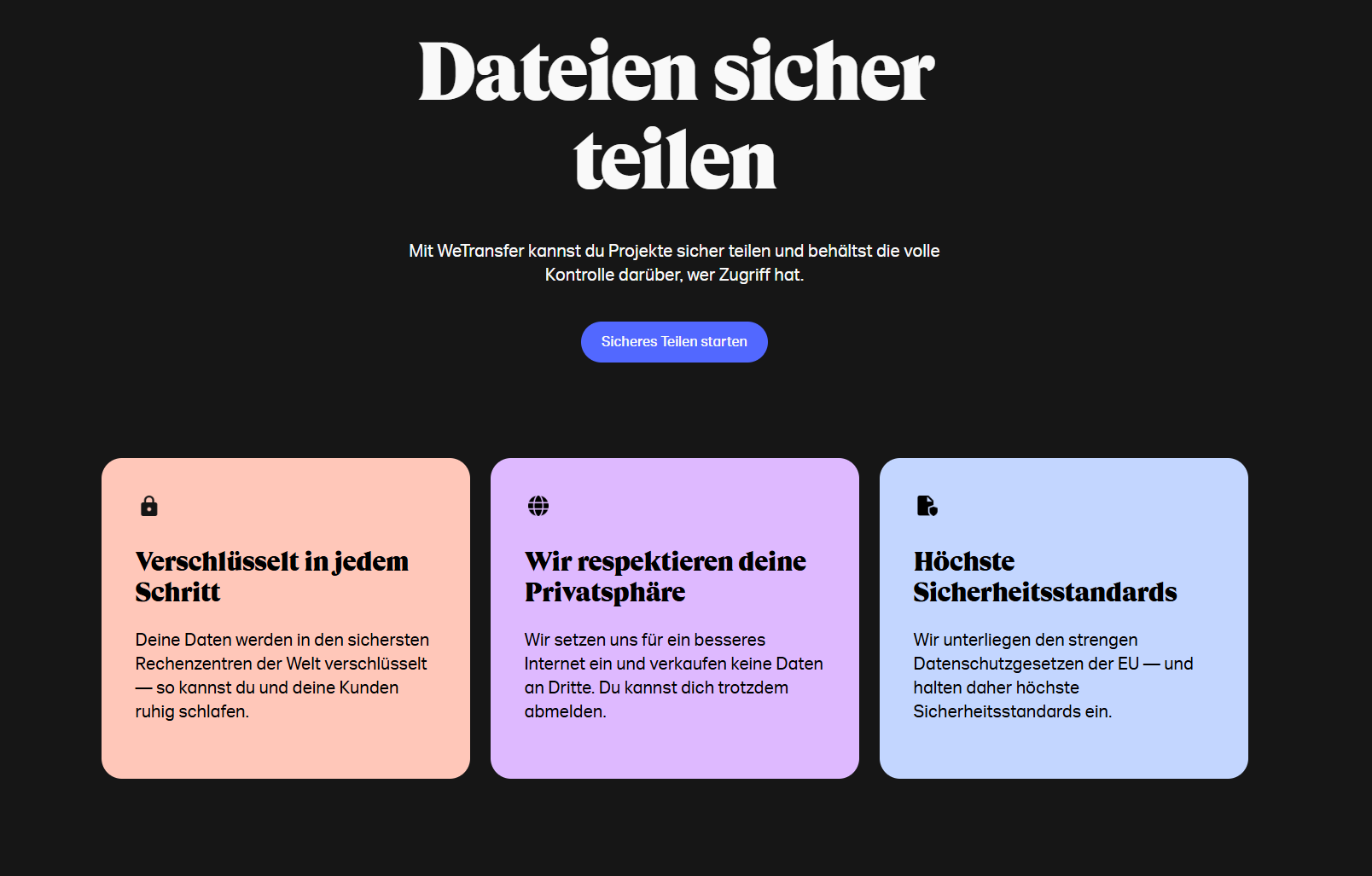 WeTransfer wirbt zwar dafür, dass die Daten sicher bleiben, nicht an Dritte verkauft oder für KI-Trainings genutzt werden… Allerdings sollte man das nicht gleich als Freipass verstehen. Illegale Inhalte werden moderiert und können gelöscht werden, mit entsprechenden Konsequenzen (siehe AGB).