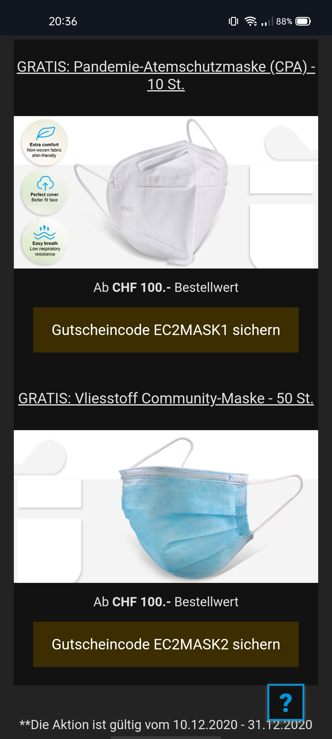 Wenn man für 100Fr. einkauft, kriegt man gratis Masken😷