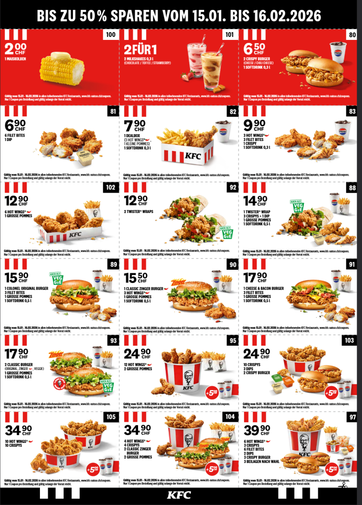 Alle Jahre wieder, neue KFC Gutscheine bis 16.02.2026