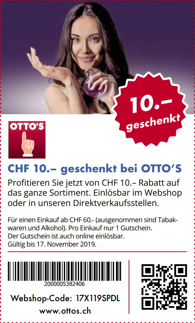 Bei einem Einkauf ab CHF 60.– (ausgenommen sind Tabakwaren und Alkohol) erhält man mit dem Gutscheincode 17X119SPDL CHF 10.- Rabatt im Onlineshop. Für die Einlösung in einer Filiale kann der Gutschein hier heruntergeladen und ausgedruckt werden. Pro Einkauf nur 1 Gutschein.