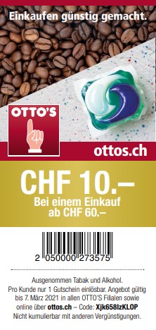 Angebot gültig bis 7. März 2021 in allen OTTO’S Filialen sowie online über ottos.ch –