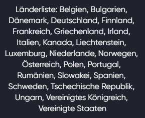 Hier noch eine Auflistung der inbegriffenen Länder: