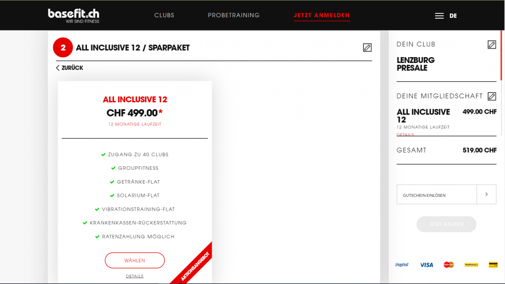 In Lenzburg AG eröffnet am 23.8.2019 ein Basefit Fitnesscenter. Für CHF 519.- inklusive Badge erhalten Neukunden welche sich bis am 31.08.2019 anmelden ein All-Inclusive Fitnessabo für ein Jahr. Auch Aktionspreis für 1 Monat vorhanden. Normalpreis für dieses Abo ist CHF 769.-