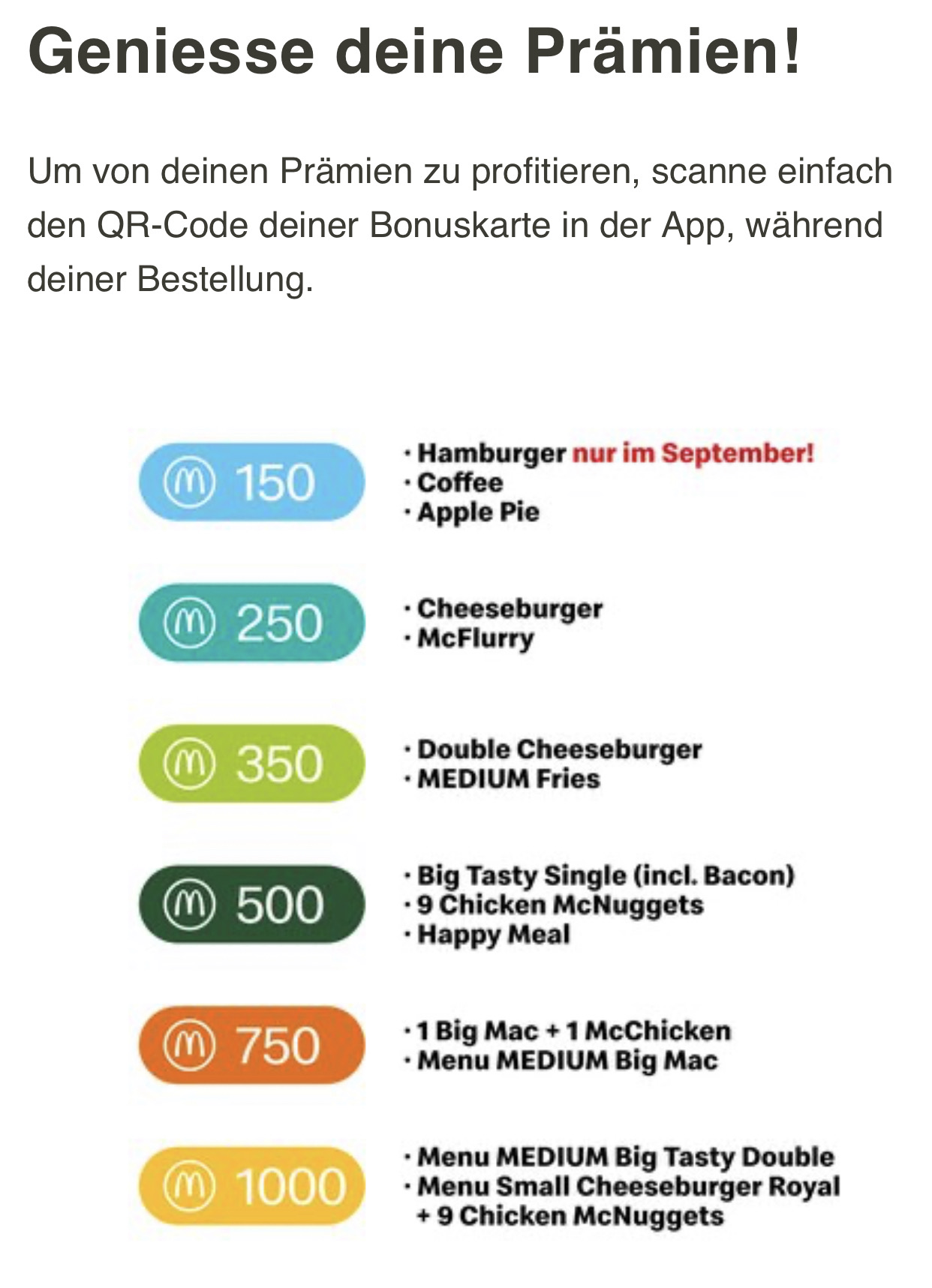 Neues McDonalds Bonusprogramm - gratis Hamburger oder Kaffee oder Apfeltasche