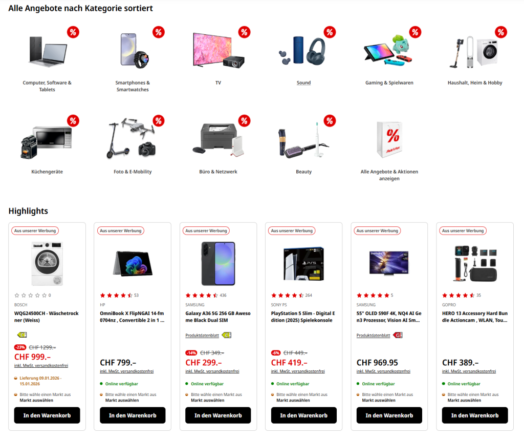 Knaller-Angebote zum Jahresstart bei MediaMarkt! Profitiere passend zum neuen Jahr von Top Angeboten inklusive neuen Bestpreisen. Die Aktion gilt bis zum 05.01.