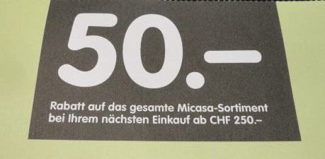 Micasa CHF 50.- GUTSCHEINCODE bei einem Einkauf ab CHF 250.- auf alles
