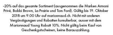 Bis morgen früh 09Uhr gibt es auf der Webseite von Marionnaud 20% Rabatt auf das gesamte Sortiment (ausgenommen davon sind die Marken Armani Prive, Bobbi Brown, La Prairie und Tom Ford).