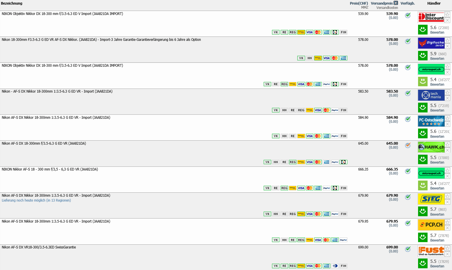 Bei interdiscount bekommt ihr aktuell das Objektiv NIKON AF-S DX 18-300mm F/3.5-6.3G ED VR für 539.90 CHF.