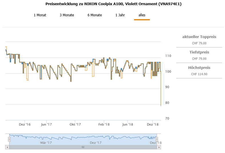 Gemäss toppreise war der bestprice über alle Farben bislang bei 89.- CHF, der zweitbeste Preis liegt aktuell bei 98.30 CHF.