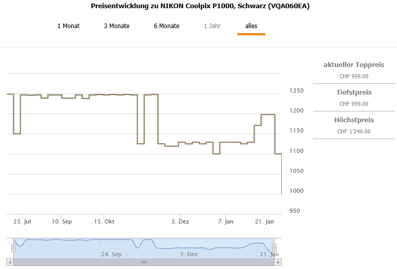 Gemäss toppreise war der bestprice bislang bei 1099.90 CHF, was aktuell auch der zweitbeste Preis ist.