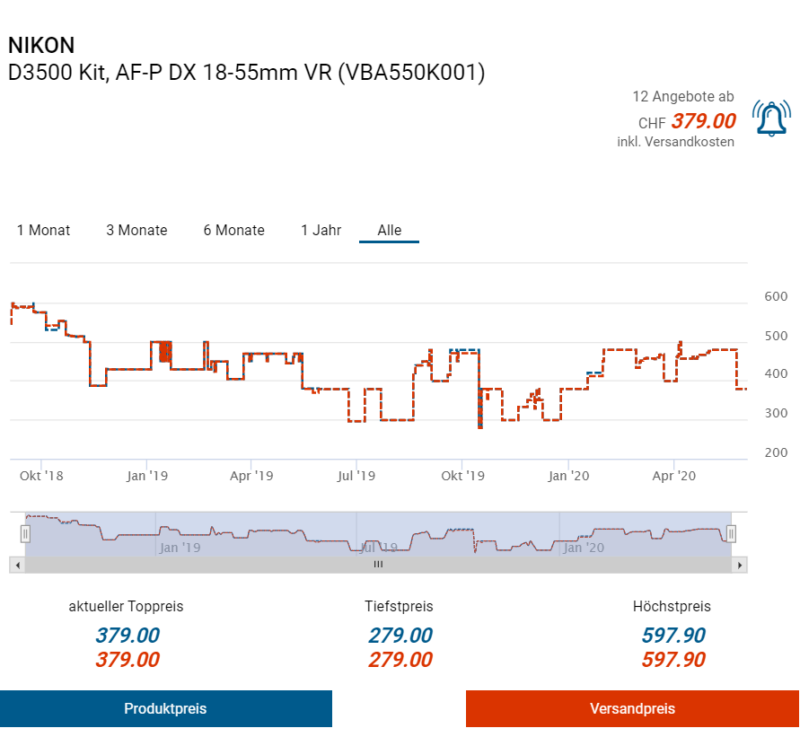 Bei Fust gibts derzeit die Kamera D3500 von Nikon mit einem 18-55mm Objektiv zum akzeptablen Aktionspreis. Der Bestpreis für das Kit lag zwar bereits einmal bei 279 Franken und einige Male bei 296 Franken, allerdings gabs die Kamera in den letzten 5-6 Monaten nie so günstig, zumindest laut toppreise. Mit dem bekannten Gutscheincode lassen sich nochmals 20 Franken einsparen.