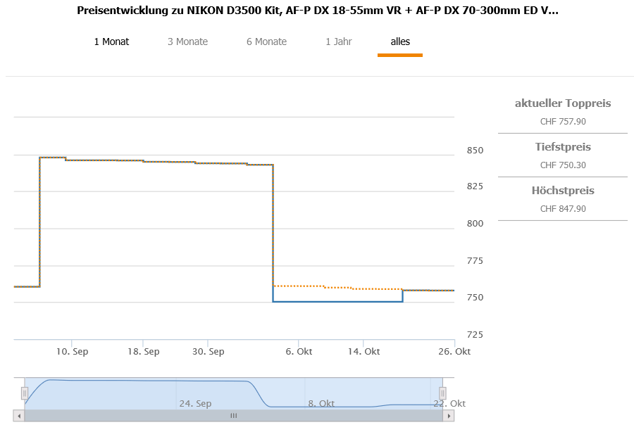 Gemäss toppreise gab es das Kit bislang nie günstiger als für 757.90 CHF, was aktuell auch der zweitbeste Preis ist.