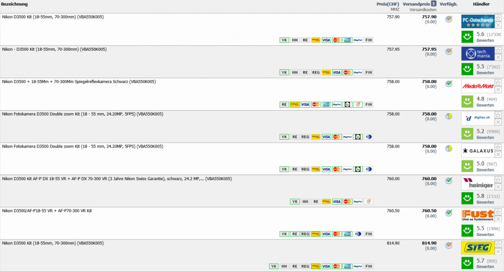 Bei MediaMarkt gibt es ab jetzt die NIKON D3500 Kit mit den Objektiven AF-P DX 18-55mm VR + AF-P DX 70-300mm ED VR für 599.- CHF.