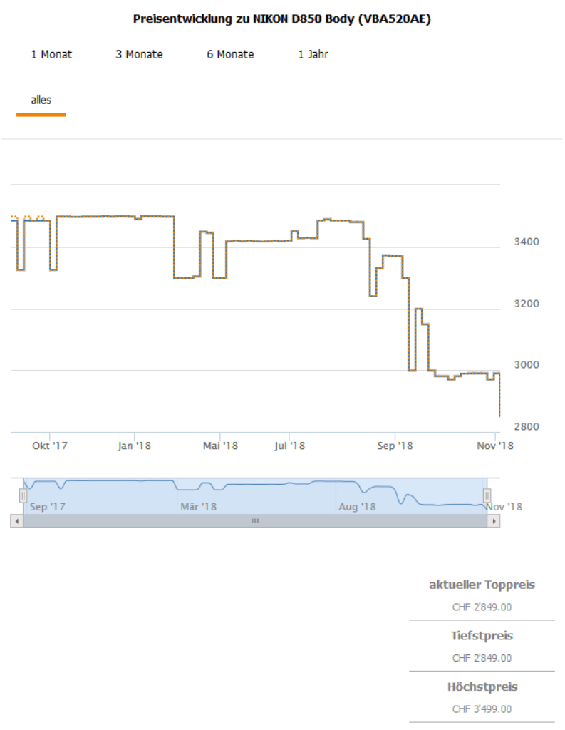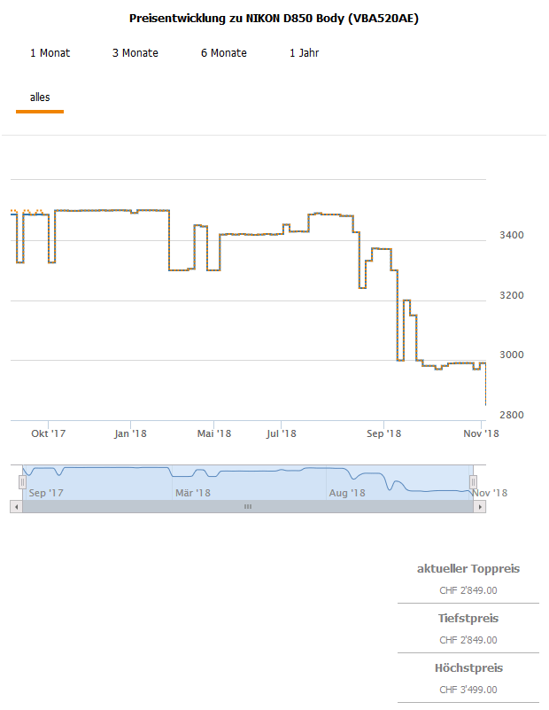 Bei brack gibt es aktuell den NIKON D850 Body (Import, nicht für die Cashback Aktion zugelassen) für 2849.- CHF.