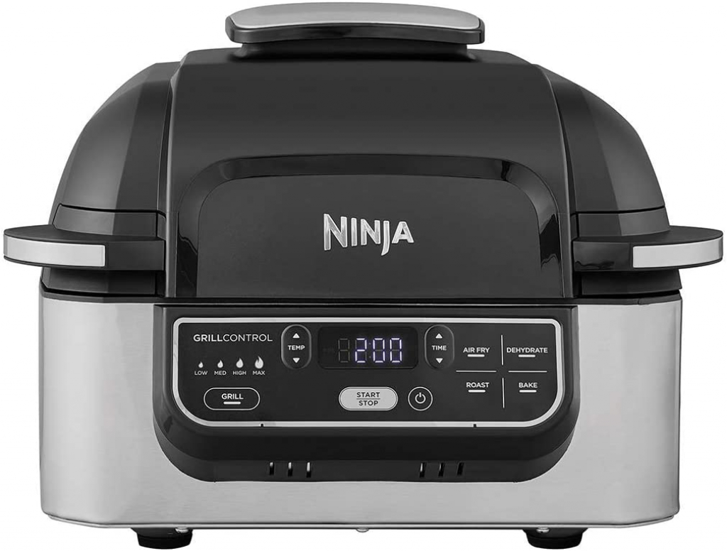 Ninja Foodi Grill & Air Fryer [AG301EU] 4 Portions, Ceramic Non-Stick, 1760W, 5.8 Litre, 45 x 35.6 x 23.5 cm, Silver and Black